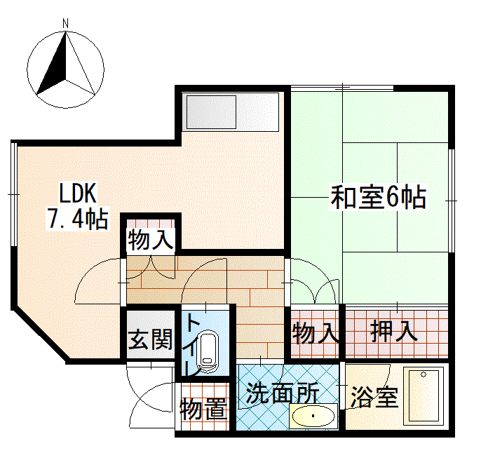 | 間取り | 和室6帖、LDK7.4帖 | |||