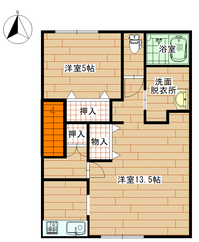| 間取り | LDK13.5帖、洋室5帖、物置 | |||