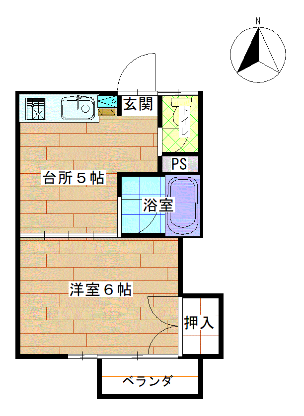 | 間取り | 洋室6帖、台所5帖、物置 | ||