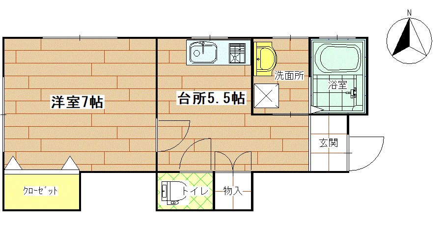 | 間取り | 洋室7帖、台所5.5帖 | |||