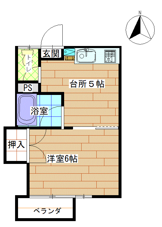 | 間取り | 洋室6帖、台所5帖、物置 | ||