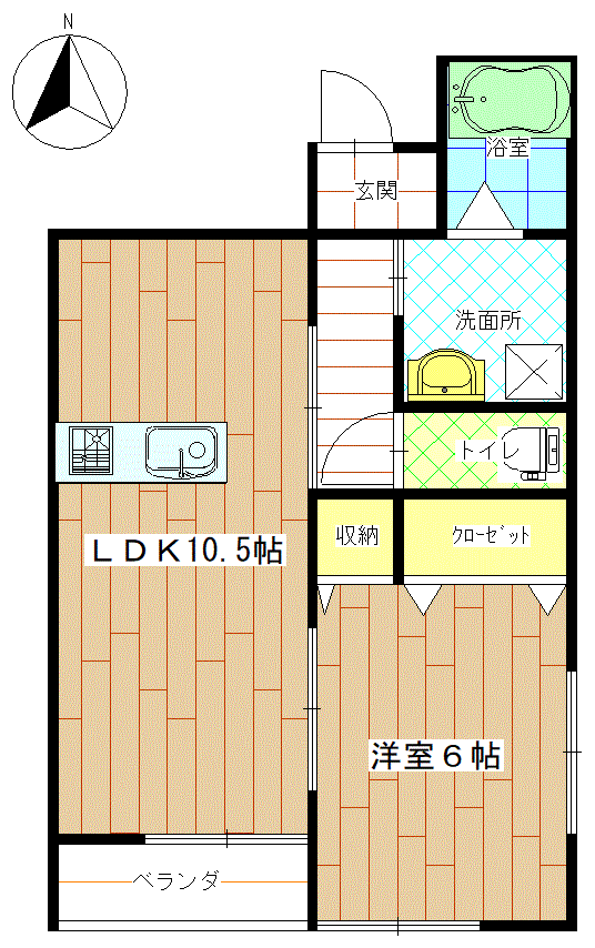 | 間取り | 洋室6帖、LDK10.5帖、物置 | |||