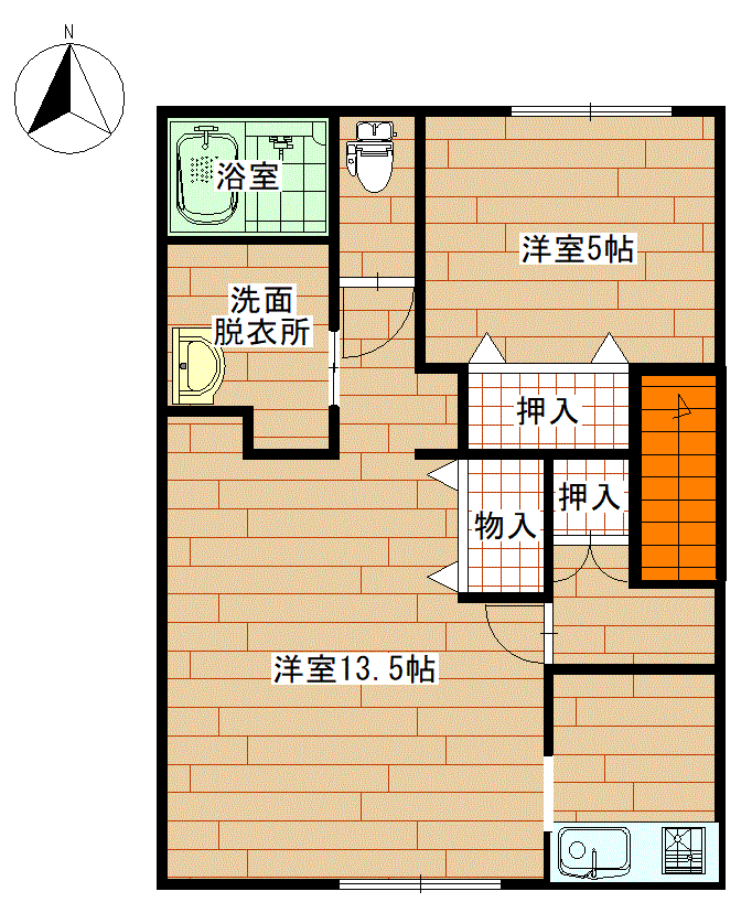 | 間取り | LDK13.5帖、洋室5帖、物置 | |||