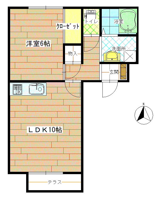 | 間取り | 和室6帖、LDK10帖、物置 | ||
