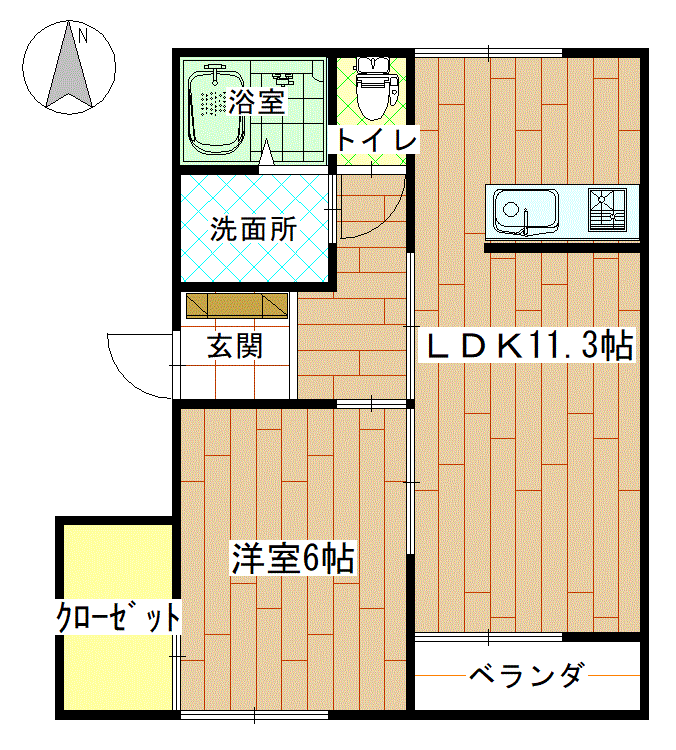 | 間取り | 洋室6帖、LDK11.3帖 | ||