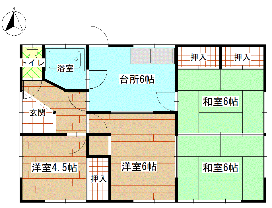 | 間取り | 和室6帖×二、洋室6帖、洋室4.5帖、台所6帖 | ||